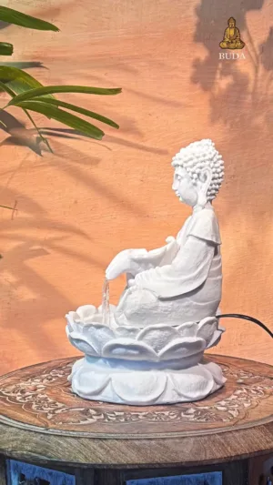 Apresentamos a Fonte Buda Cascata em Marmorite, uma peça decorativa que combina o som relaxante da água corrente com a serenidade do Buda. Confeccionada em Marmorite (pó de mármore com resina), esta fonte é perfeita para criar um ambiente tranquilo e harmonioso. A figura do Buda sentado sobre uma flor de lótus detalhada transmite paz e equilíbrio espiritual.