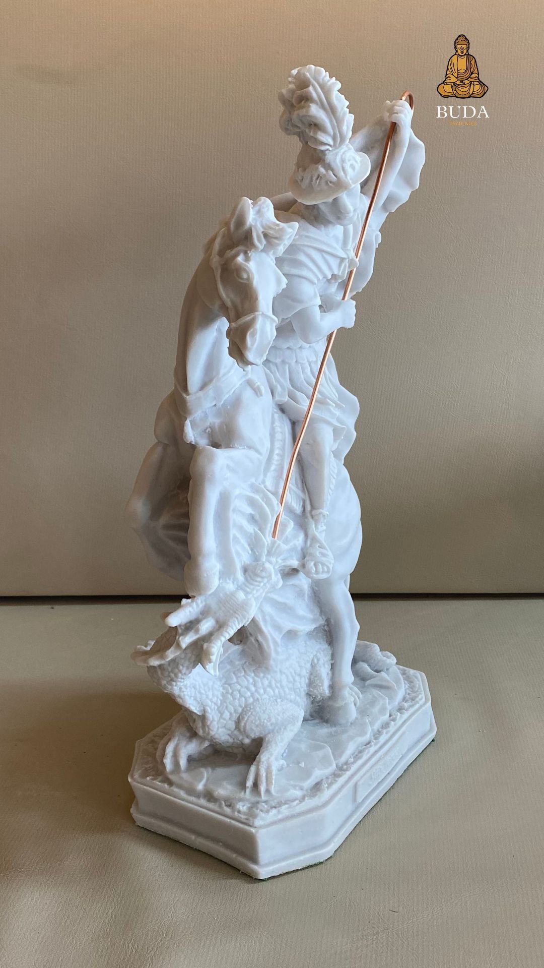 Apresentamos a escultura de São Jorge em Marmorite, uma peça devocional que simboliza proteção, coragem e fé. Confeccionada em marmorite, esta escultura retrata São Jorge montado em seu cavalo, vencendo o dragão, transmitindo força e esperança para o ambiente.
