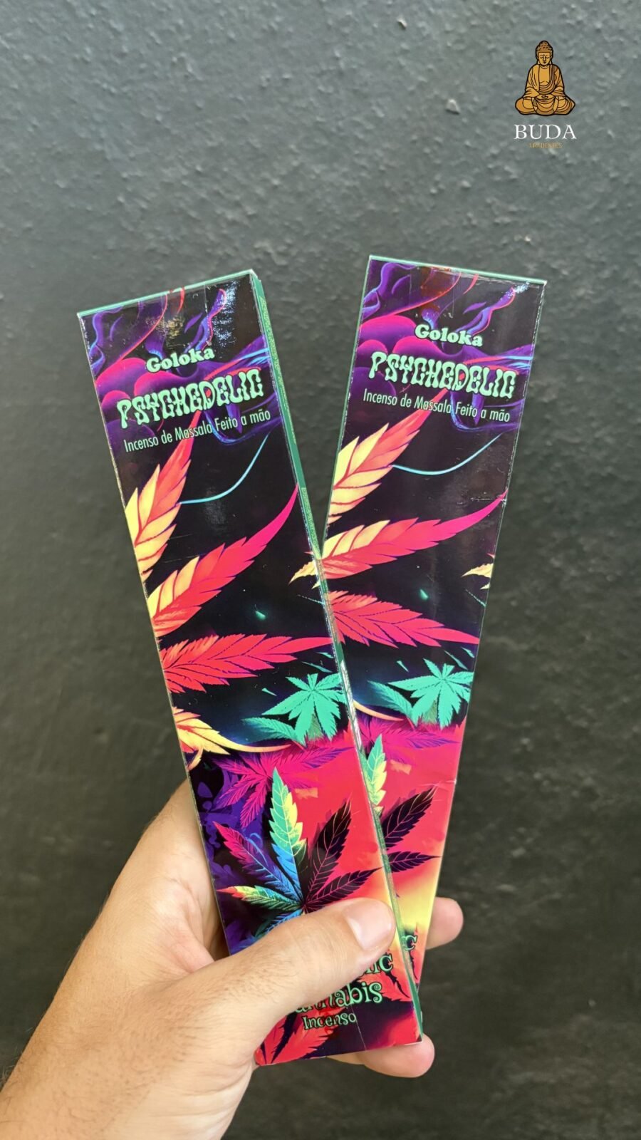 Permita-se viajar pelos sentidos com o Incenso Goloka Massala – Psychedelic e transforme o ambiente em um espaço de boas vibrações e consciência expandida.